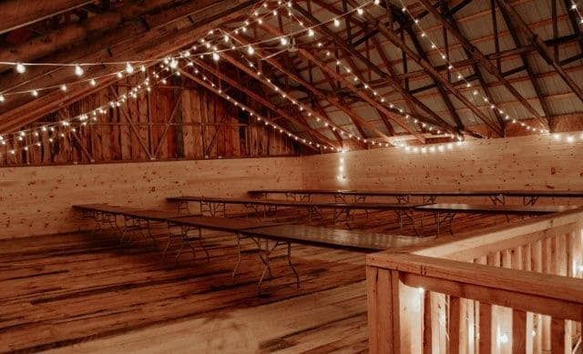 Our 4000 sq. ft. barn, nestled on 80 acres of picturesque wooded land, sets the stage for unforgettable events. With a Bluetooth surround sound system to keep the party going, and tables and chairs included, we've got all your needs covered. And when it's time to take in the fresh country air, our outdoor picnic tables provide the perfect spot to relax and enjoy the stunning surroundings.